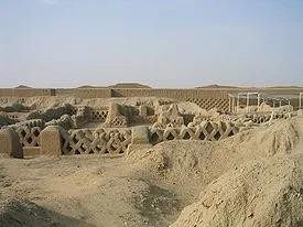 昌昌古城是南美洲古印第安文明中奇穆王国的都城,位于秘鲁北部从11世纪起存在了约500年,1470被印加帝国征服后衰落。昌昌古城是美洲最大的泥土建筑群。最具特色的是其历史建筑及建筑上的装饰浮雕图案。这些或连续出现的符号化图案多取材于自然界或当地的动物,造型简约,却颇为形象非常独特。城墙和房屋用粘土、砂砾和贝壳粉末建成,极为牢固。城内许多房屋的墙壁上都装饰有壁画,题材多取自于生活中常见的树木、鸟兽、虫鱼等。很多墙上还饰有以捕鱼为内容的浮雕。