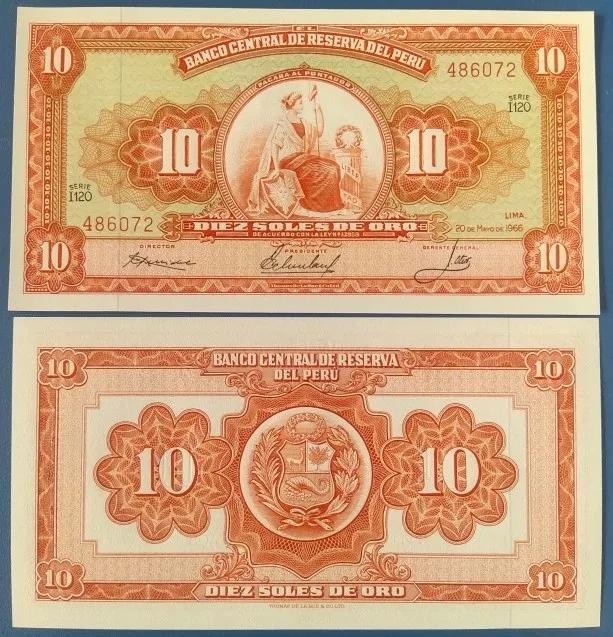 1951年-1966年之间发行了几版纸币,面值分别是5、10、100、500索尔,图案都是一样的,版别不一样,颜色不一样。
