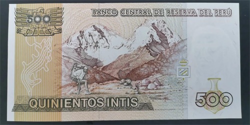 背面图案是的的喀喀湖,是南美洲海拔最高、面积最大的淡水湖,也是世界最高的淡水湖之一。位于玻利维亚和秘鲁两国交界的科亚奥高原上,被称为“高原明珠”。面积有8,330平方公里,湖海拔3,812米,水深平均100米,最深处可达256米。其中2/5在秘鲁境内。湖为群山环抱,景色秀丽,湖岸蜿蜒曲折,形成许多半岛和港湾。秘鲁境内有45条河流注入此湖,仅有东南角的德萨瓜德罗河为湖的出口。的的喀喀湖是南美洲印第安人文化的发源地之一。印第安人称为圣湖。阿依马拉族认为,他们世代崇拜的创造太阳和天空星辰的神祗也来自湖底。在湖中及沿岸有丰富的自然资源。从远古起,印第安人用香蒲编成小舟或筏子,下湖捕鱼。湖中还有几十个印第安人乌罗族居住的“漂浮岛”,它们是用香蒲在湖面堆集而成的人工岛,岛上的居民都以捕鱼为生。湖岸的印第安人从远古起使用鸟粪肥种植玉米、土豆等农作物。他们在雕刻、建筑、冶金、制陶方面都达到很高水平。