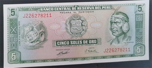 1968年,发行了新一版纸币,面值分别是5、10、50、100、200、500、1000索尔。1969-1977年之间不断再版,下面就介绍一下这套钱币中的几个低面值纸币,高面值纸币市面很难见到了。