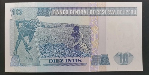背面是秘鲁农业耕种、收割的画面。