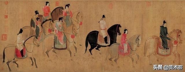 以鲜衣怒马突出丰富的变化,以双线勾勒的笔法还原现实,以圆润秀劲的刻画人物造型,以雍容自信、休闲懒散的神态展现出以形写神。其实在《虢国夫人游春图》这幅人物画中,显现出自我的人性,不再是唐以前的宗教人物类型,而是来源于画家身边的个别人物,展示的是画家开始关注现实社会、关注自身情怀的开始。
