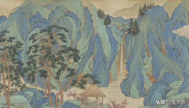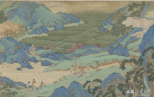 隋朝画家展子虔的《游春图》为我国最早的山水画之一。纵观此图,描绘了江南春季青山叠翠,桃杏争艳,金丝垂柳,人物骑马乘船踏春的场景。主要是以青绿设色,虽然看上去笔墨技法稍显稚嫩,但好在卷线条劲健,山石勾勒出形无皴法,春意盎然,“被视为青绿山水画的嚆矢。”