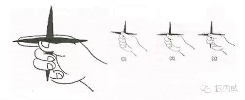 图18 十字手里剑的握法。其中(1)为错误的握法。