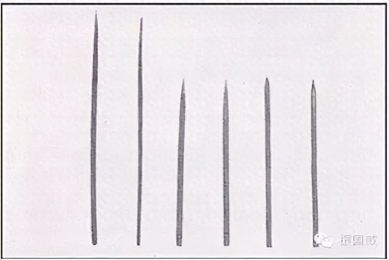 从左上起第1、3、4个是甲贺流和伊贺流的手里剑;第5、6个是小堀流的;第7个是柳生流的;第8个是狐伝流的;第10个是柳生流和甲贺流所使用的。