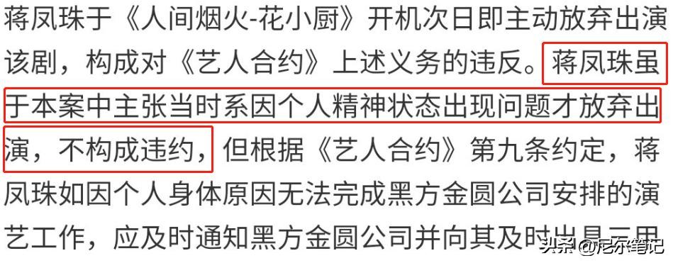 可就在这个时候,“黑金”公司却拿出了一份她亲手签署过的合约,在某一页角落里清楚写明:"只要是艺人个人原因导致拍摄无法进行,那就算违约。"