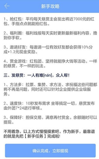 1、安装后,点击我的,选择已有账户登录,就用刚才注册的手机和设置的密码登录。然后点击菜单-悬赏,看见新人任务,点击进入,完成新人任务即可获得1元。在这个过程中基本的任务步骤也就会了,并且提现账户这些都绑定了,为后面长期做任务做好准备。