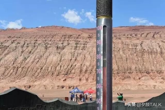 而吐鲁番当地火焰山景区内的“定海神针显示的地表温度,几乎可以达到七八十摄氏度。