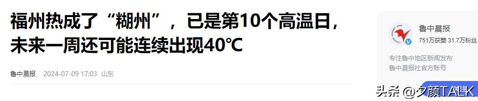 [3]官方媒体 鲁中晨报2024年7月9日发布《福州热成了“糊州”,已是第10个高温日,未来一周还可能连续出现40℃》