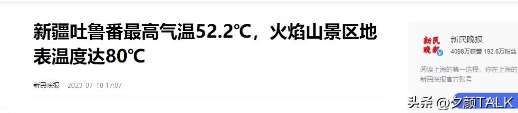 [1]官方媒体 新民晚报2023年7月18日发布《新疆吐鲁番最高气温52.2℃,火焰山景区地表温度达80℃》