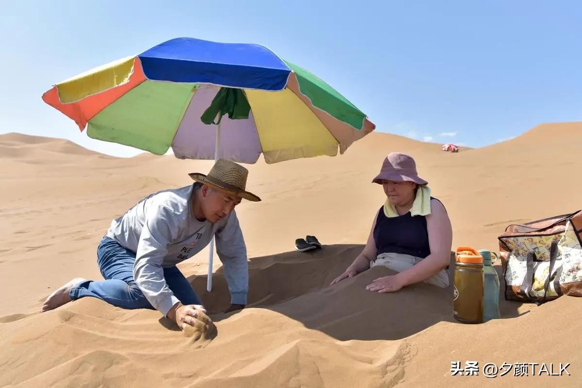 这样的高气温也让当地有了一种康养疗法——“沙疗”。