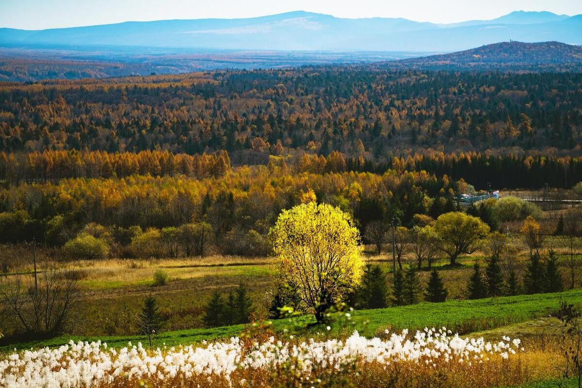 从满眼翠绿到漫山遍野的金黄,万顷林海层林尽染,沉浸在秋日里的童话世界中。