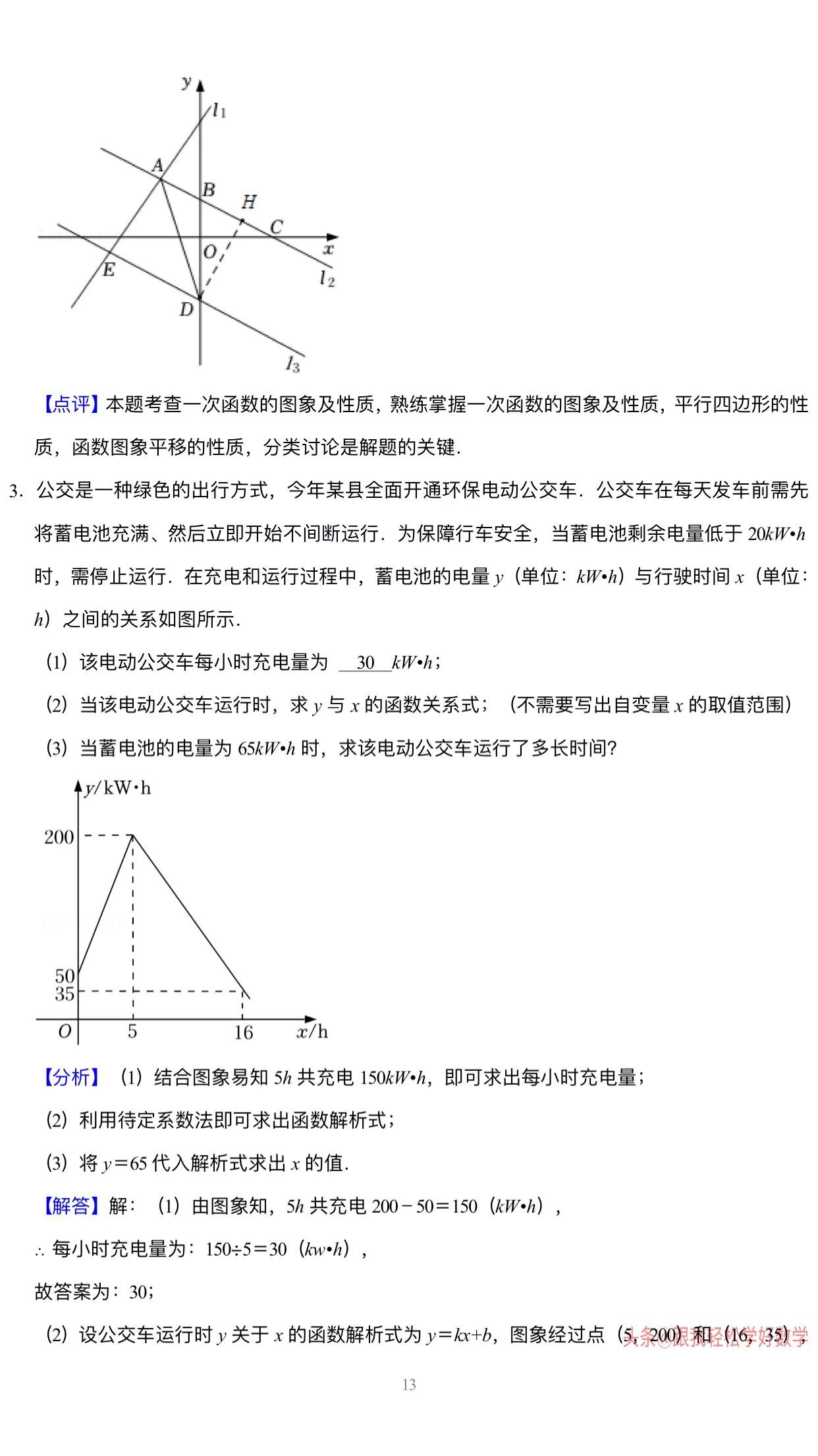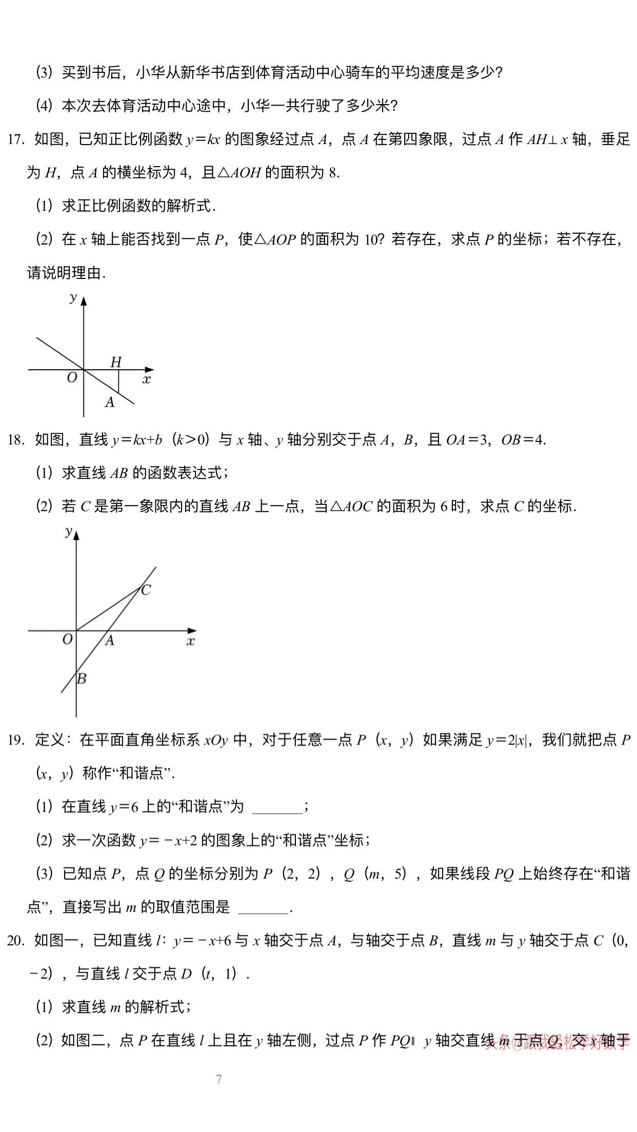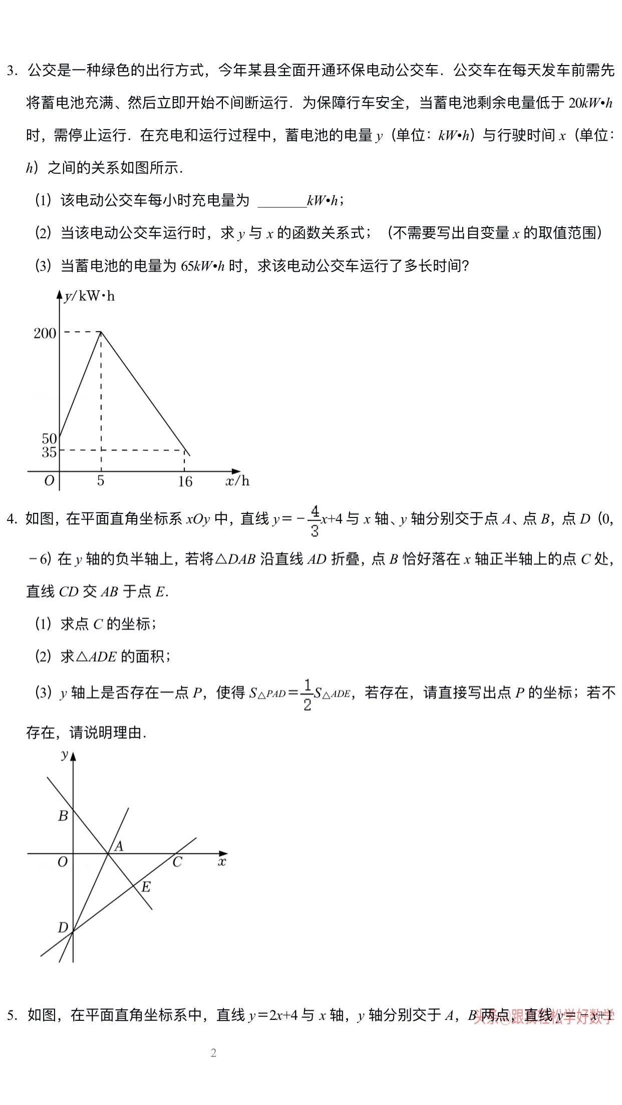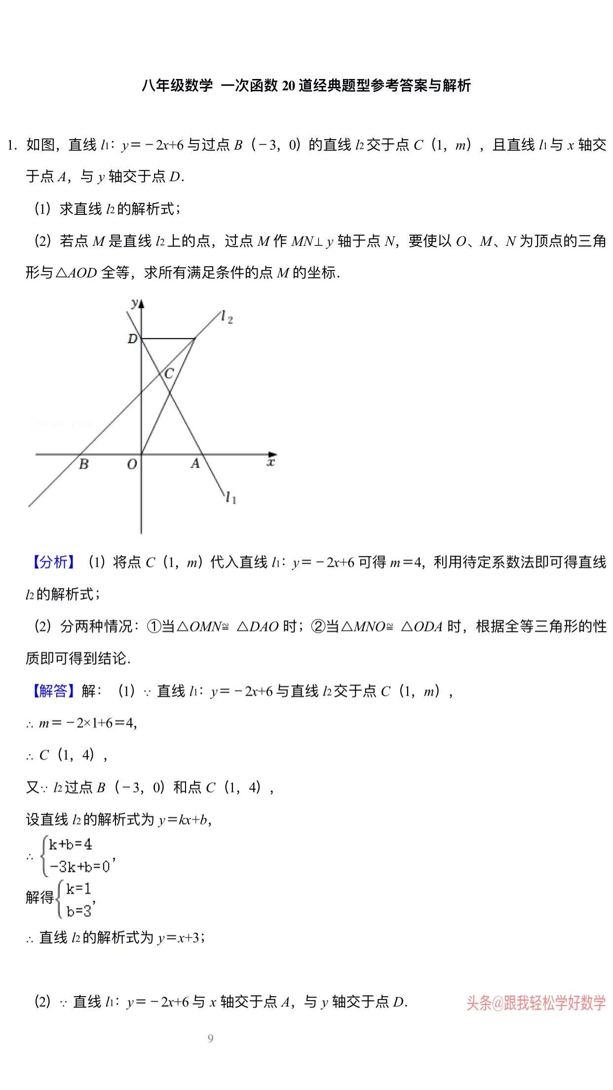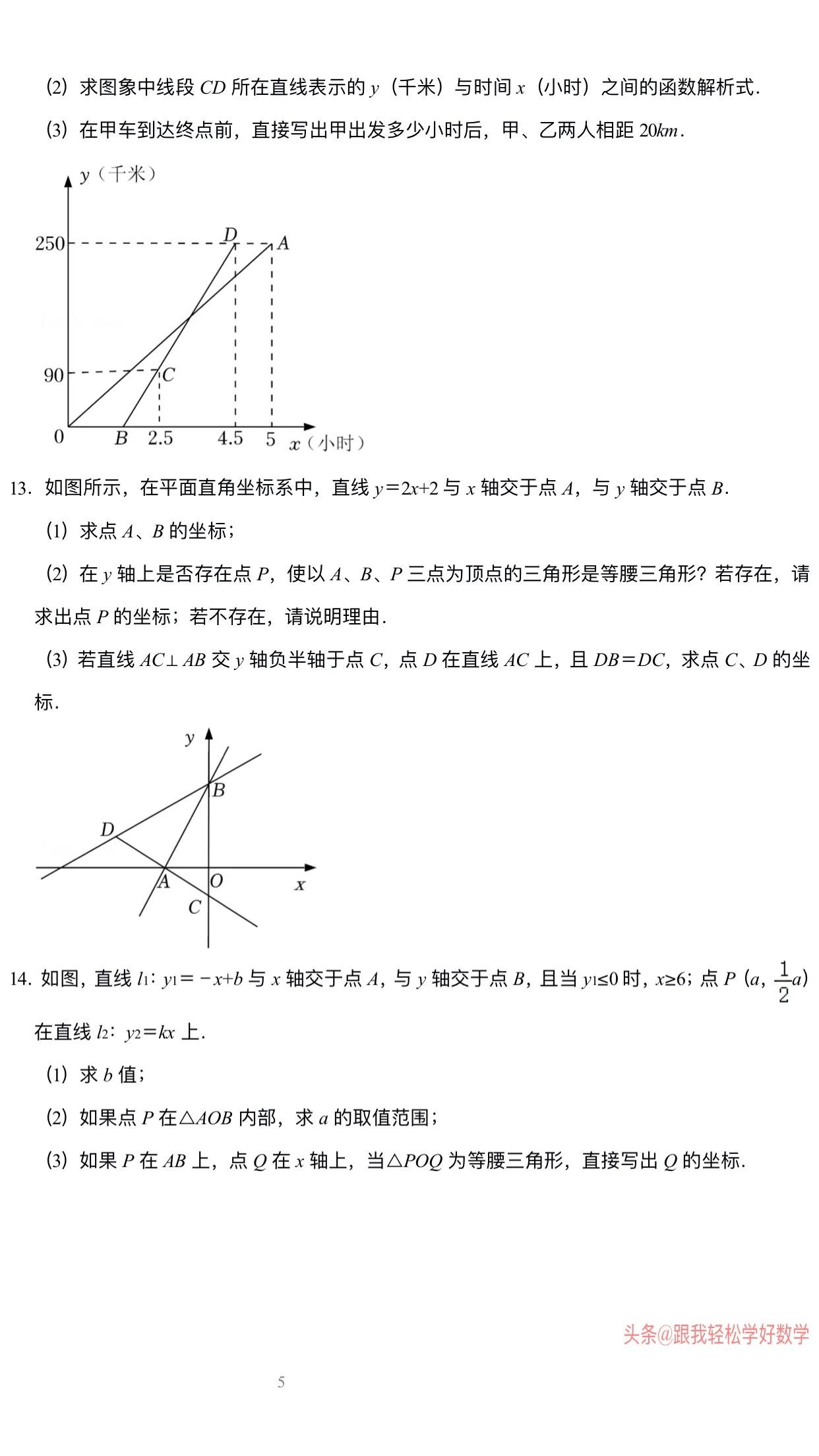 八年级数学 一次函数20道经典大题(可以每天做一道,附有答案)