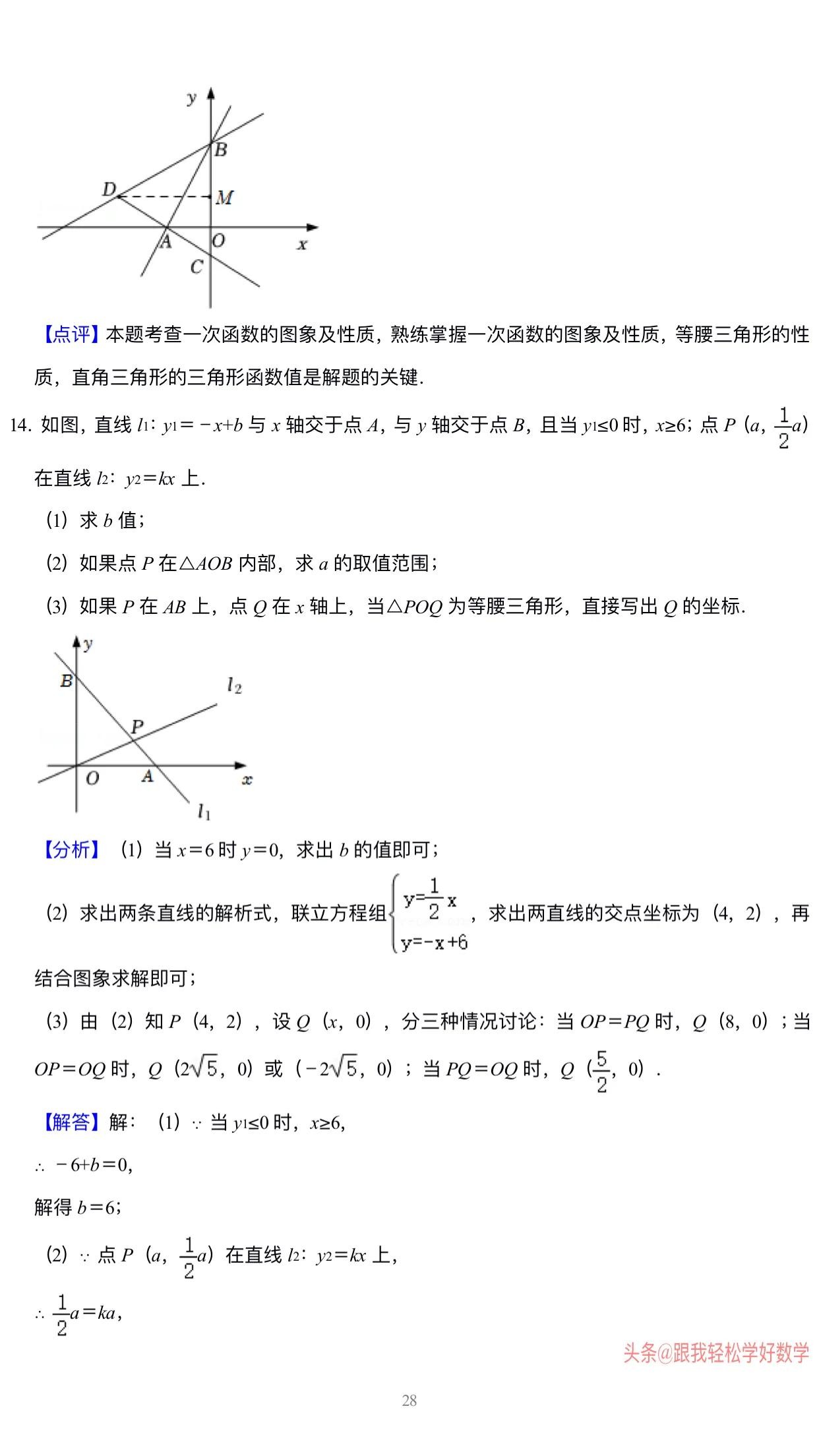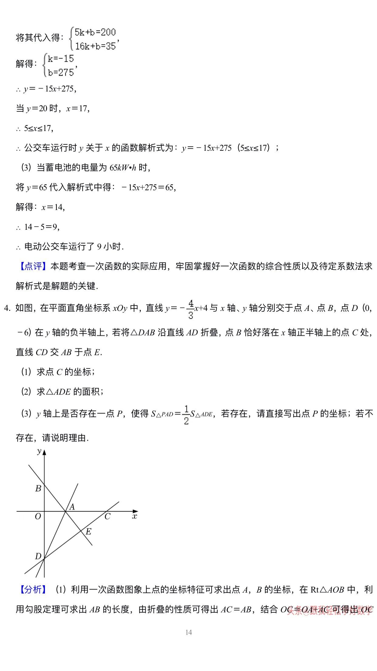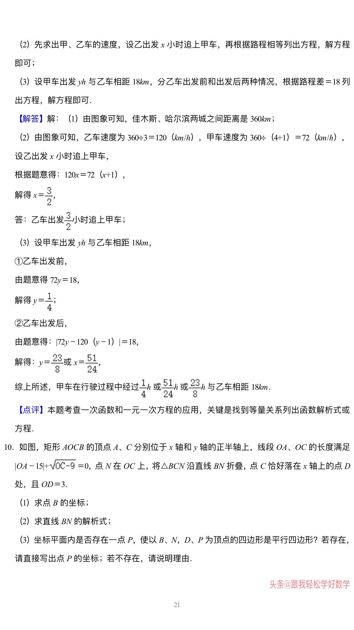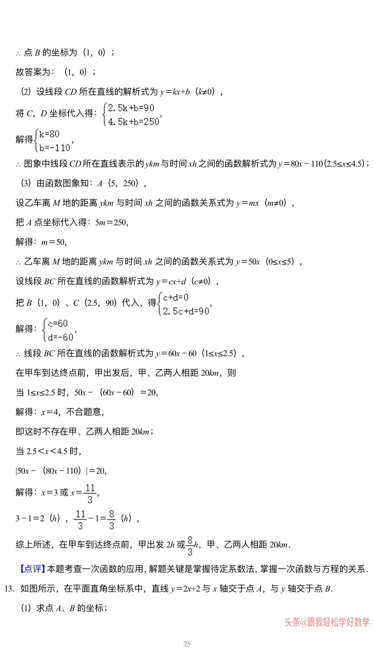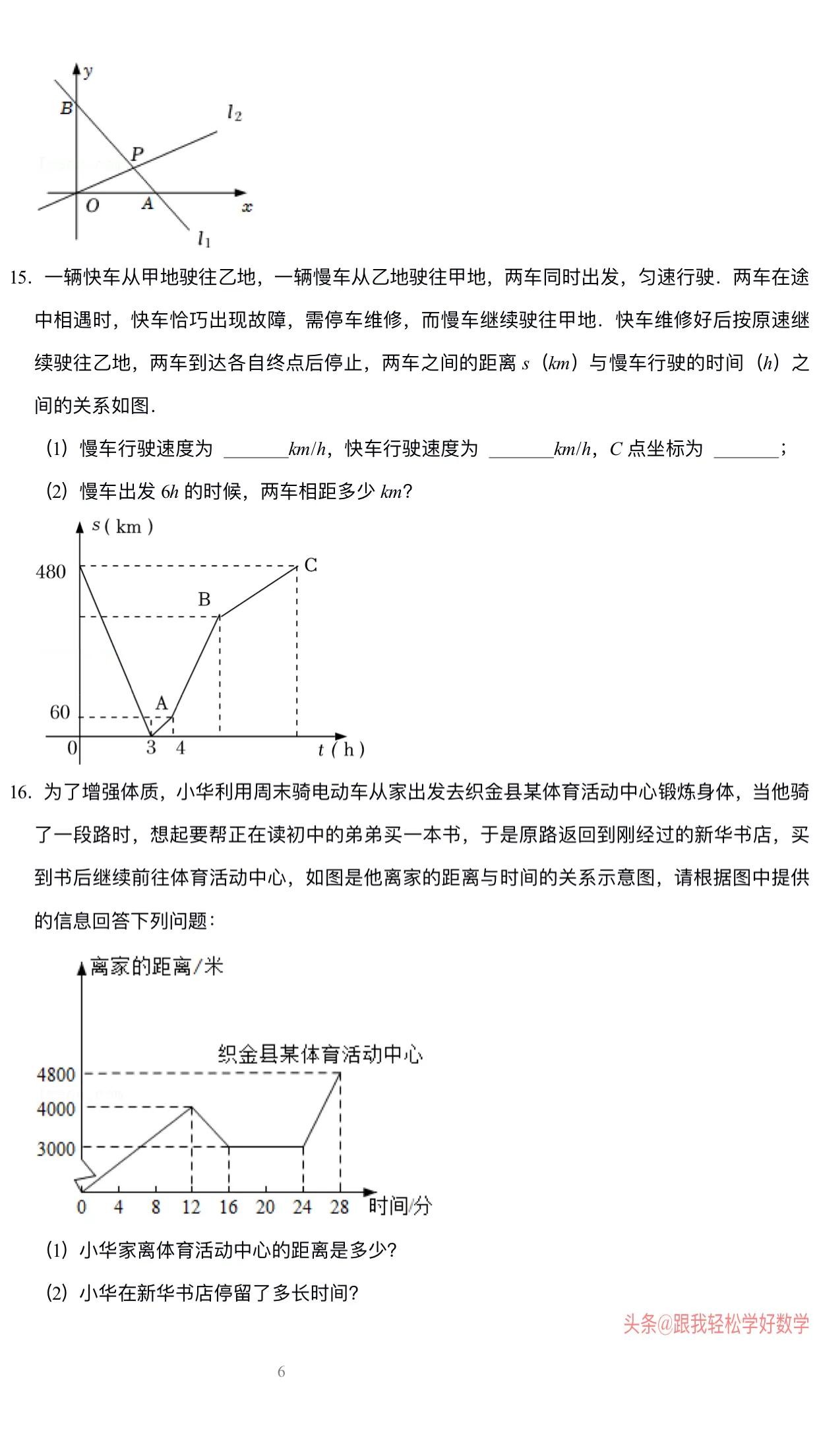 八年级数学 一次函数20道经典大题(可以每天做一道,附有答案)