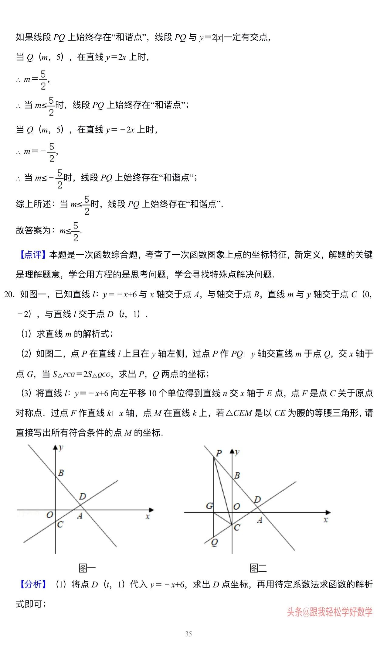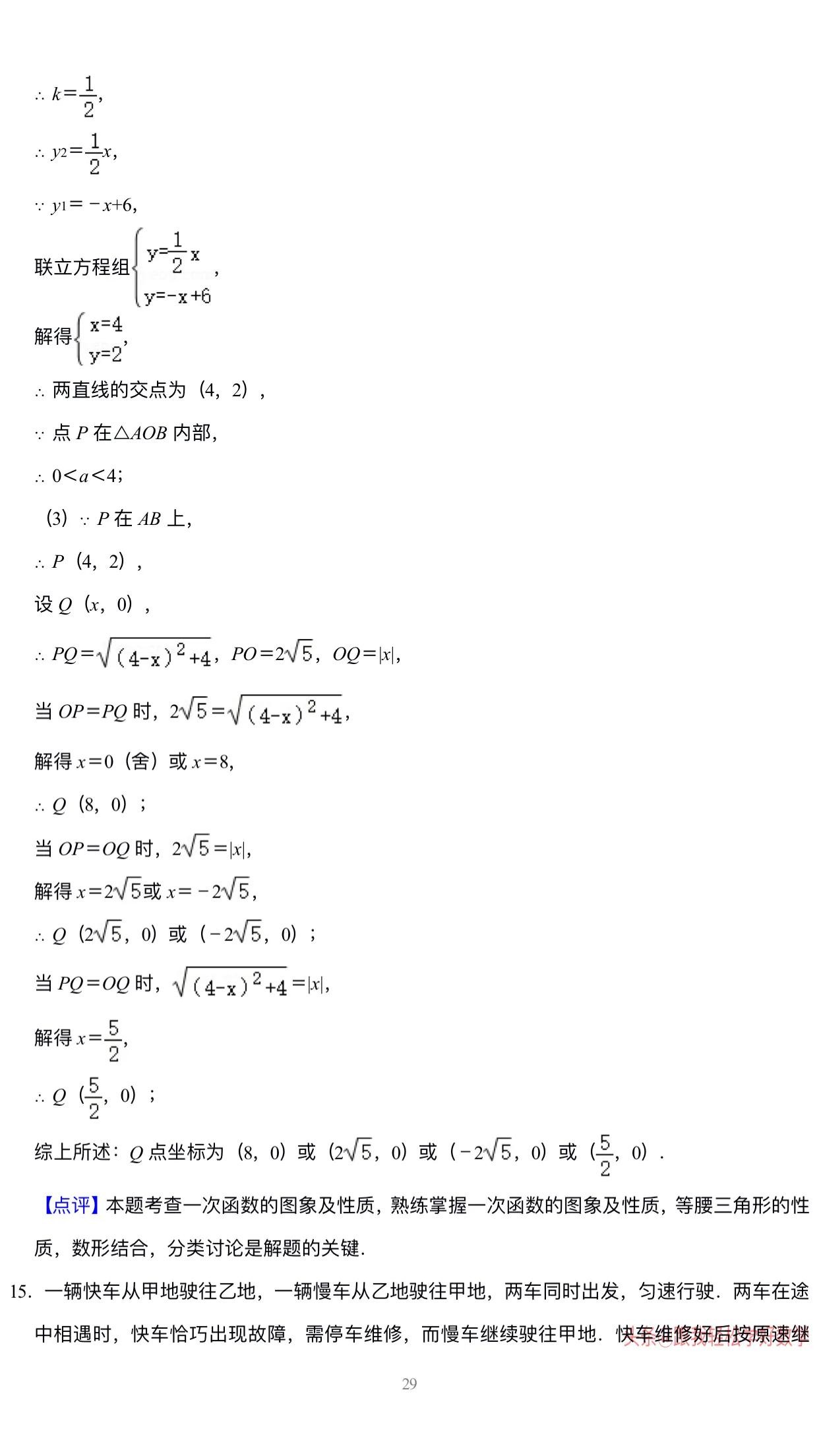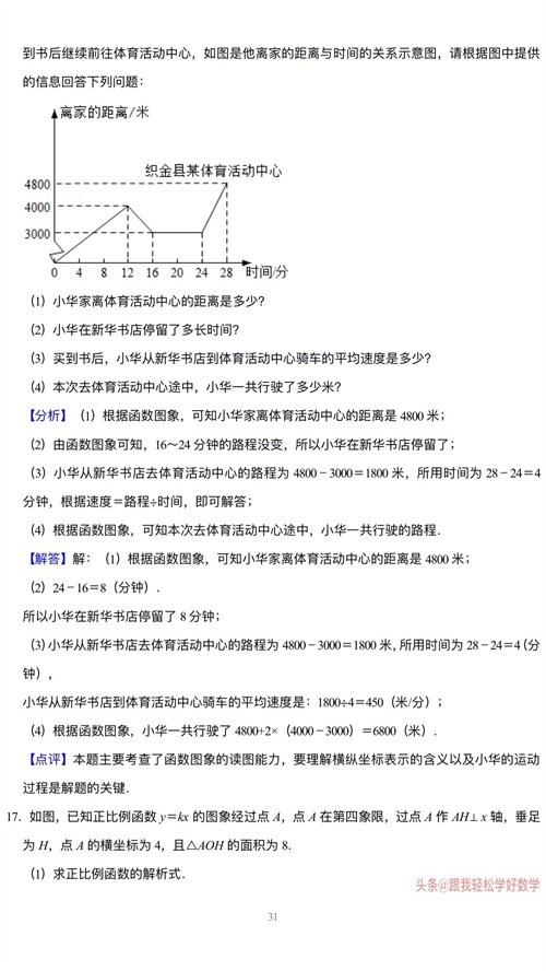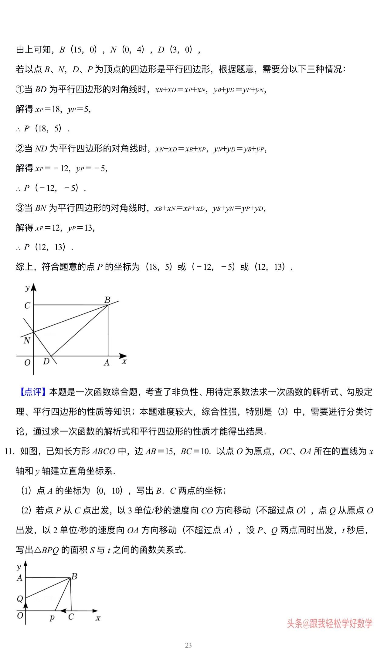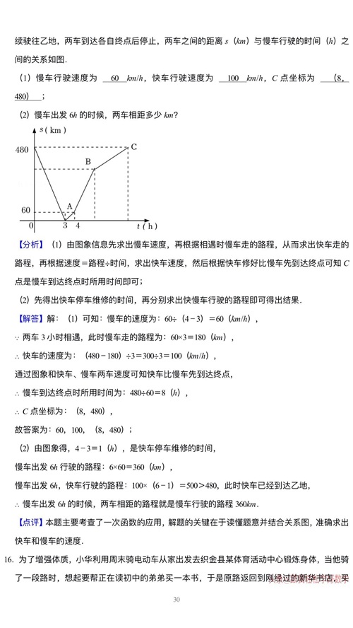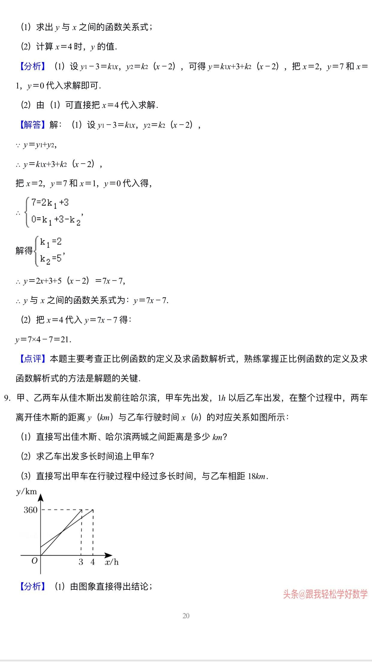 八年级数学 一次函数20道经典大题(可以每天做一道,附有答案)