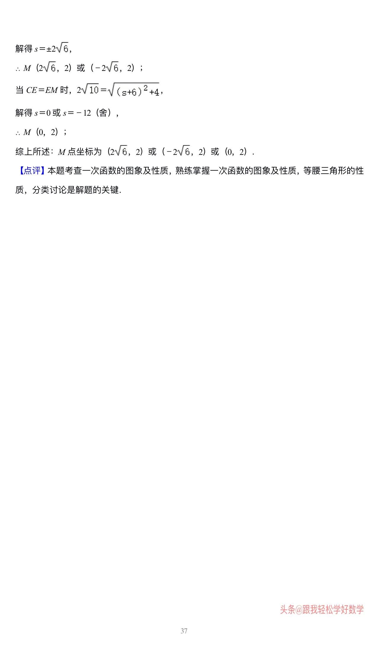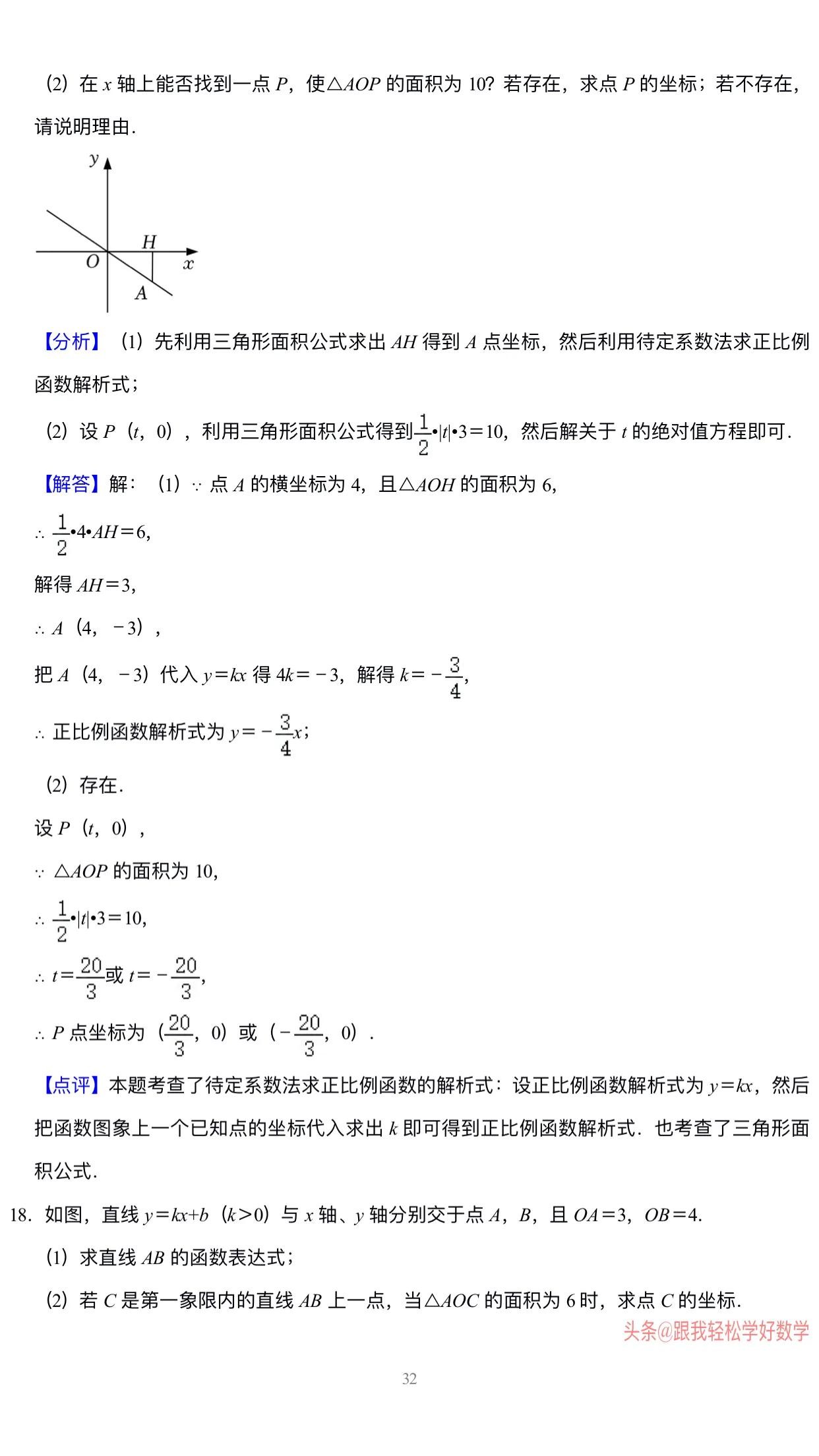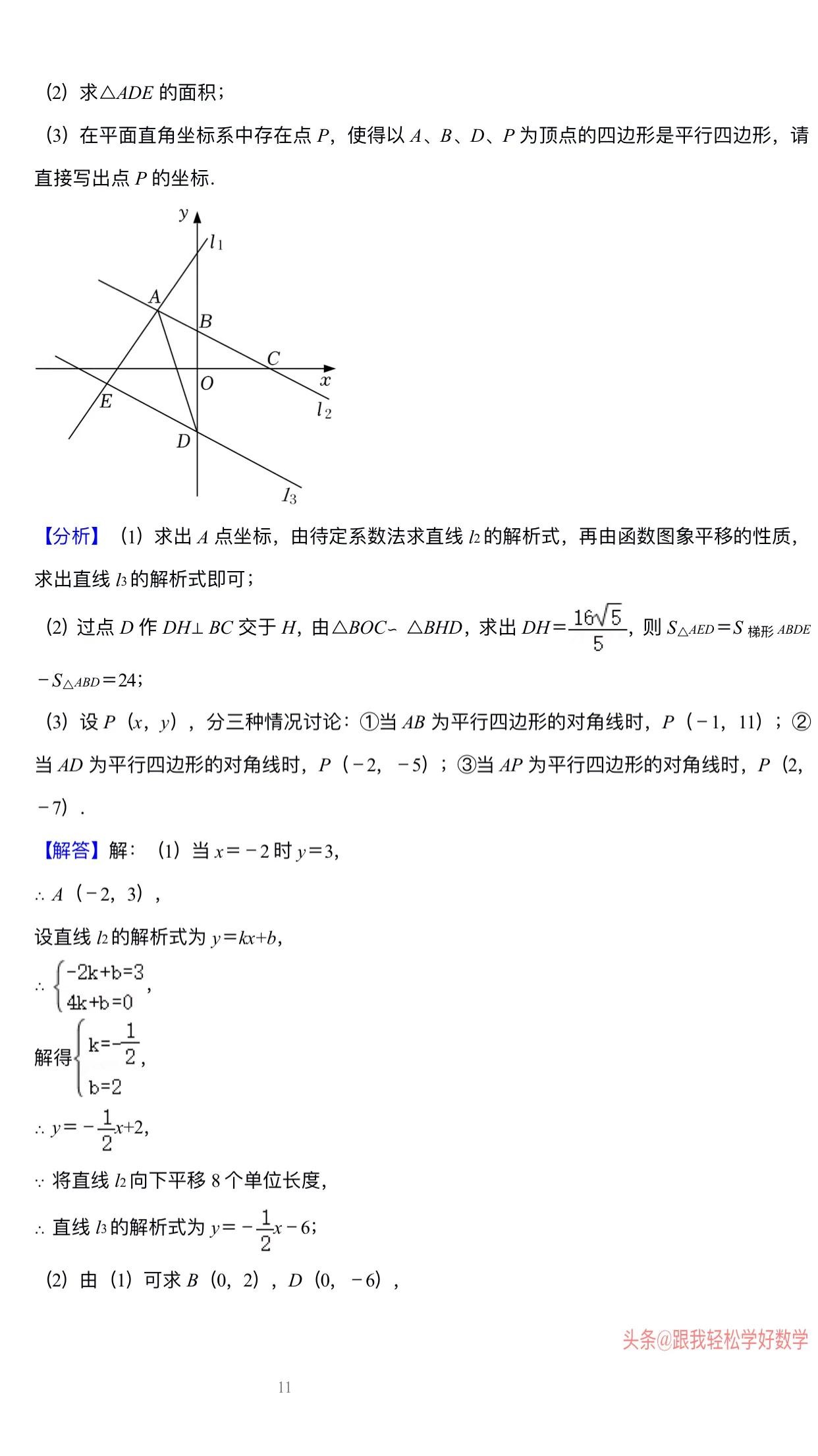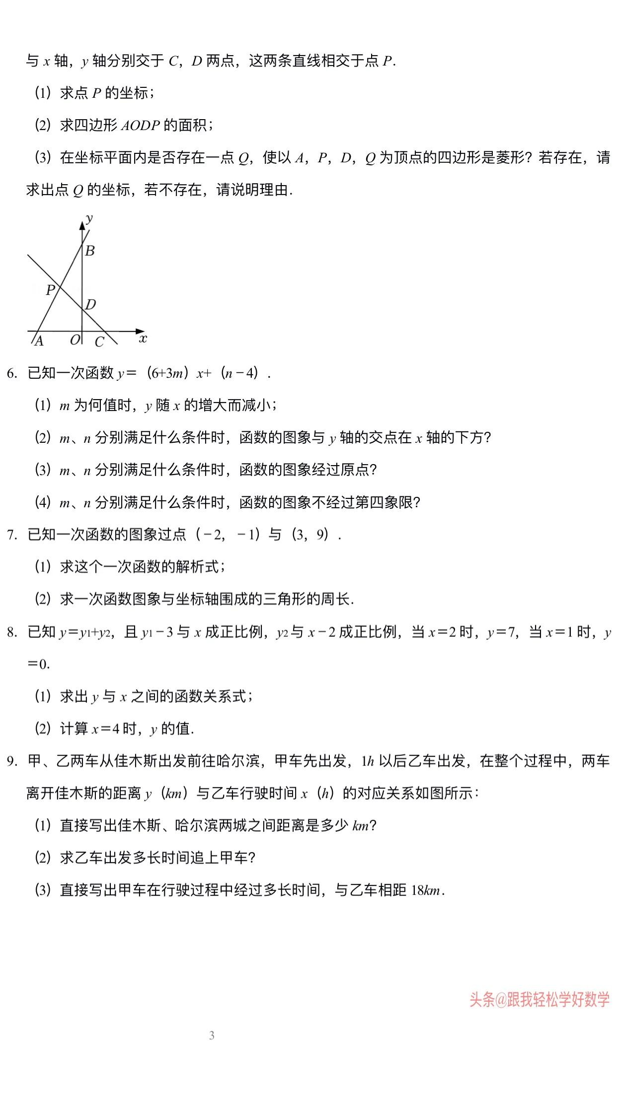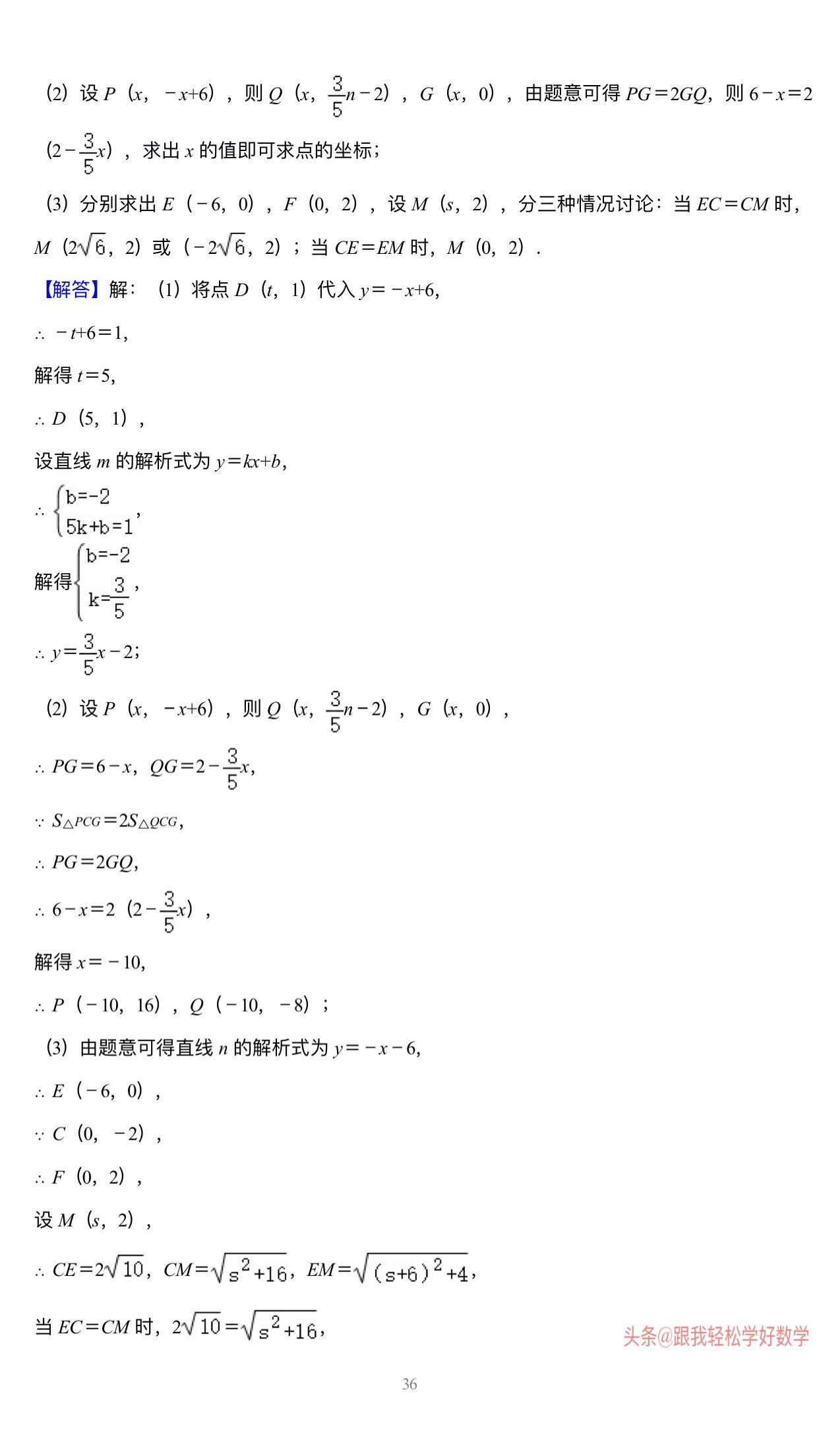 八年级数学 一次函数20道经典大题(可以每天做一道,附有答案)