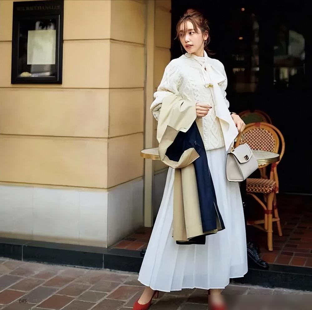 比如秋冬季节,流行棕色、米色等色调,你可以选择这些色彩的配饰和白色大衣进行搭配,这样能够更好地融入白色大衣的搭配中。