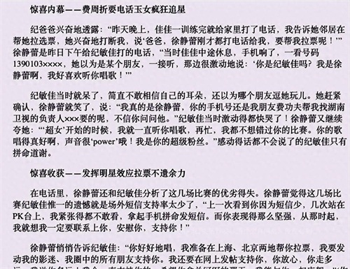 在超女比赛期间,纪敏佳的父亲透露了一个小秘密:徐静蕾竟然给她打了足足半小时的电话,让她欣喜若狂。徐静蕾坦言自己一直是纪敏佳的超级粉丝,对她的表现进行了深度分析,并为她投下了宝贵的一票。