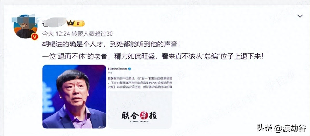 胡锡进作为《环球时报》的前主编,经常发表对国内事件的评论,风格比较独特也比较大胆。但就是这种针砭时弊,敢于发声,却总遭到一些人诋毁?小编以为,见解不同可以讨论,可有些人总喜欢上升维度,恶意揣测,甚至人身攻击!实在非大丈夫作为。