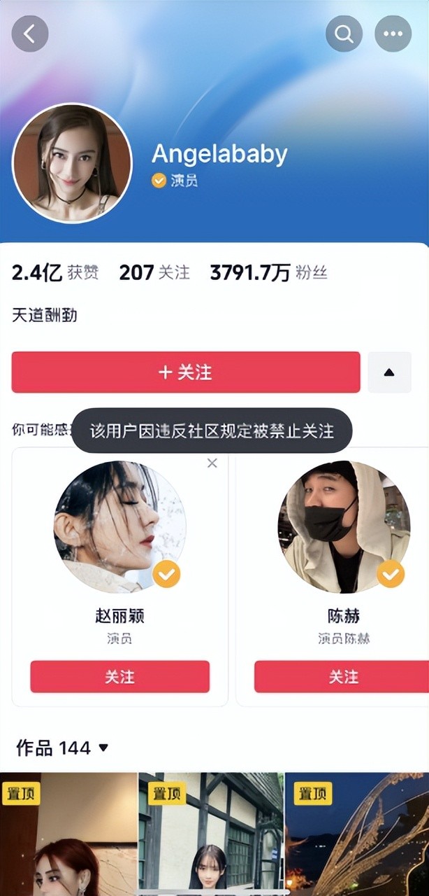 Lisa及其后援会微博账号无法查看后,杨颖、张嘉倪抖音账号因违反社区规定被禁止关注