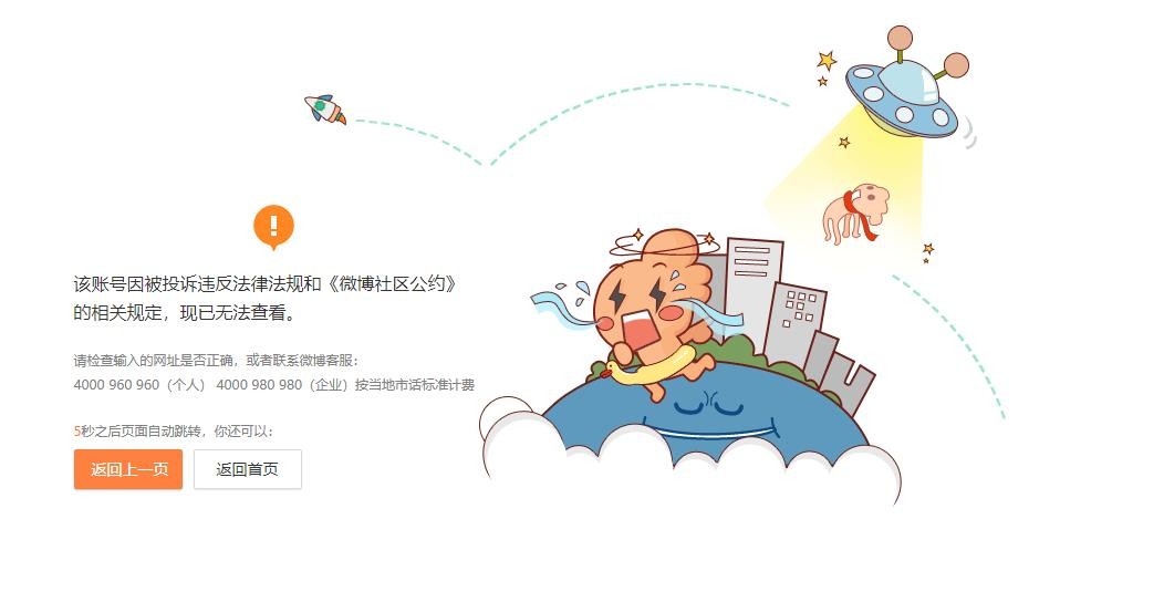 九派新闻点击Lisa微博账号“lalalalisa_m”以及其后援会账号“LISA_LALISAHOUSE ”发现其主页已无法显示,跳转页面上则显示“该账号因被投诉违反法律法规和《微博社区公约》的相关规定,现已无法查看。”