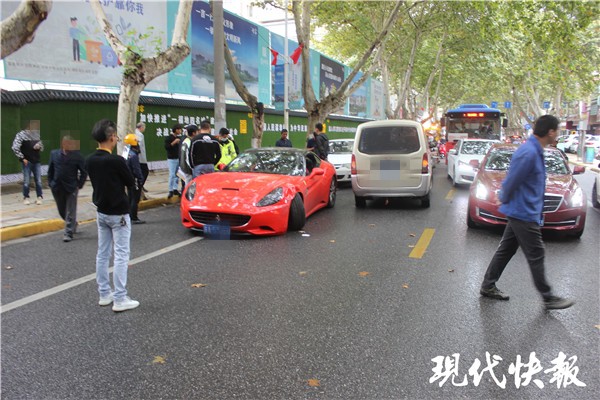 从网友发布的现场图片中,记者注意到,红色法拉利和银色面包车应是相向而行,红色法拉利左前轮疑似悬挂被撞断,车轮扭曲,被撞后,法拉利停在了机非分隔线上;而面包车的左侧后车门处凹陷,有明显刮擦痕迹,车越过了道路中间的黄色虚线,停在了对面车道上。