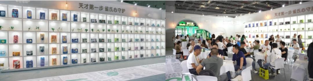 此次参展,雀氏根据“质护美好亲肤生活”的大主题,以清新的绿色和简约的白色为主基调,为大众打造了一个清新治愈的自然展馆。走进场馆,一种环保、健康、亲肤的自在感油然而生,视觉上的眼前一亮,舒缓了炎热带来的躁动情绪,让观众放松身心,更好地沉浸式逛展。
