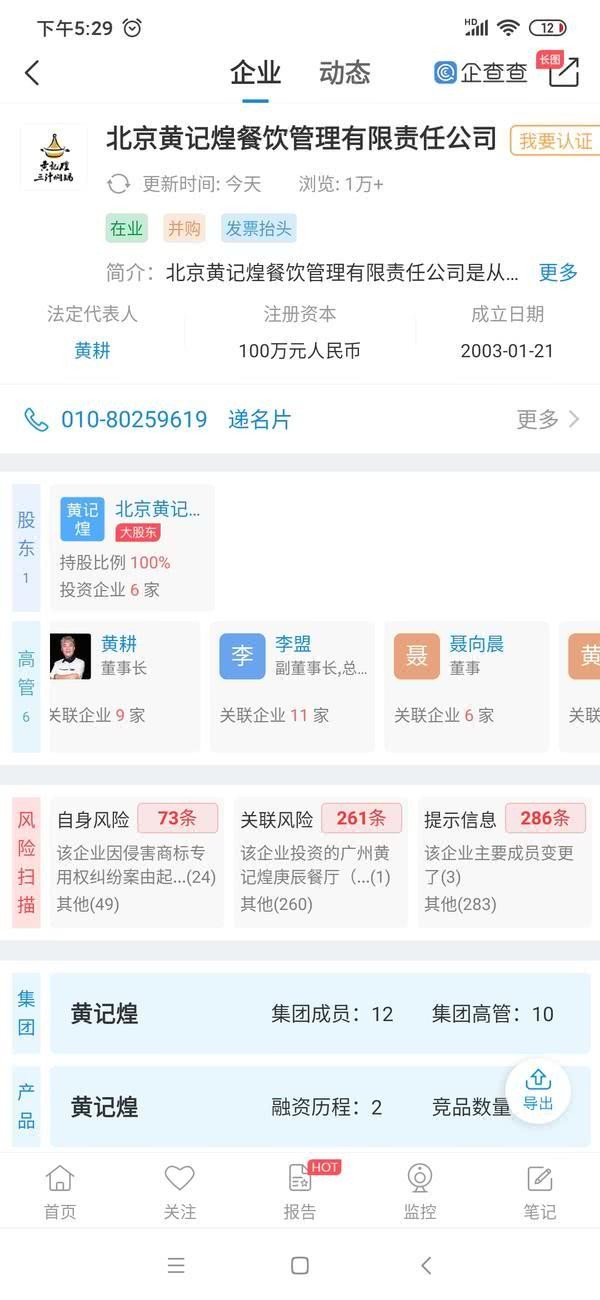 变更后的李盟同时也是北京黄记煌餐饮管理有限责任公司的副董事长、总经理,聂向晨为董事。