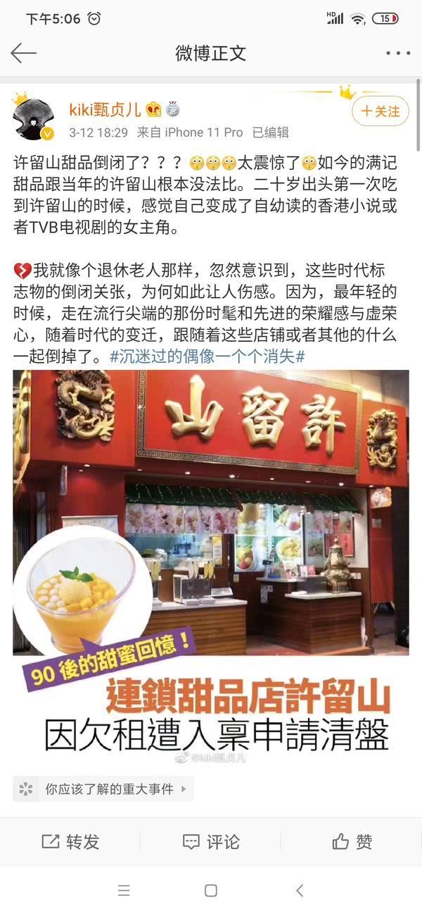 3月13日,香港甜品品牌“许留山”登上热搜。
