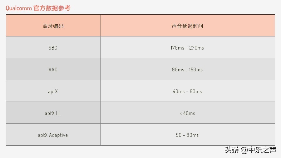 此外,蓝牙编码的处理速度也会直接影响到音频的传输速度,据高通官方公布的数据,aptX LL能够低至40ms的延迟值,一般人无法察觉得到低于70ms的延迟,确实比SBC或AAC的延迟更短。但是,能够支持aptX LL编码的手机并不多,而可兼容该编码的真无线耳机,记得以往就有森海塞尔Momentum True Wireless,但第二代已经删减了。目前仅有少部分耳机和发射器可支持aptX LL。