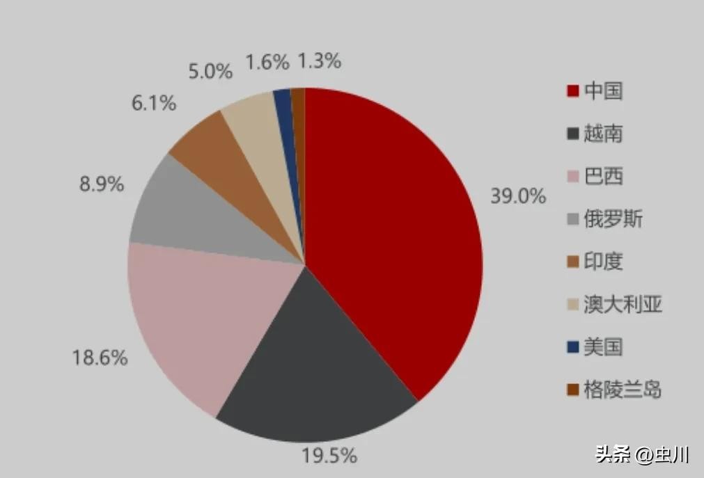 根据美国地质调查局(USGS)2024年发布的数据,全球稀土储量约为1.2亿吨(以稀土氧化物REO计),主要分布在中国、越南、巴西、俄罗斯、印度、澳大利亚等国家。其中,中国稀土储量为4400万吨,占全球总储量约40%,位居世界第一;越南稀土储量为2200万吨,占比18.33%,位列第二;巴西稀土储量为2100万吨,占比17.50%,排名第三。