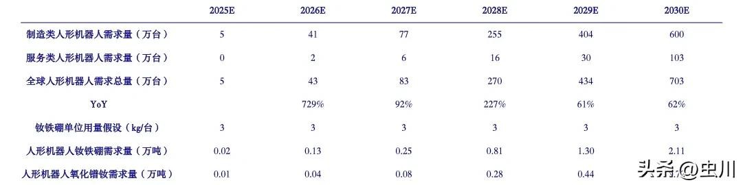 特斯拉Optimus、宇树机器人Unitree等机器人量产有望带动稀土永磁材料需求爆发。