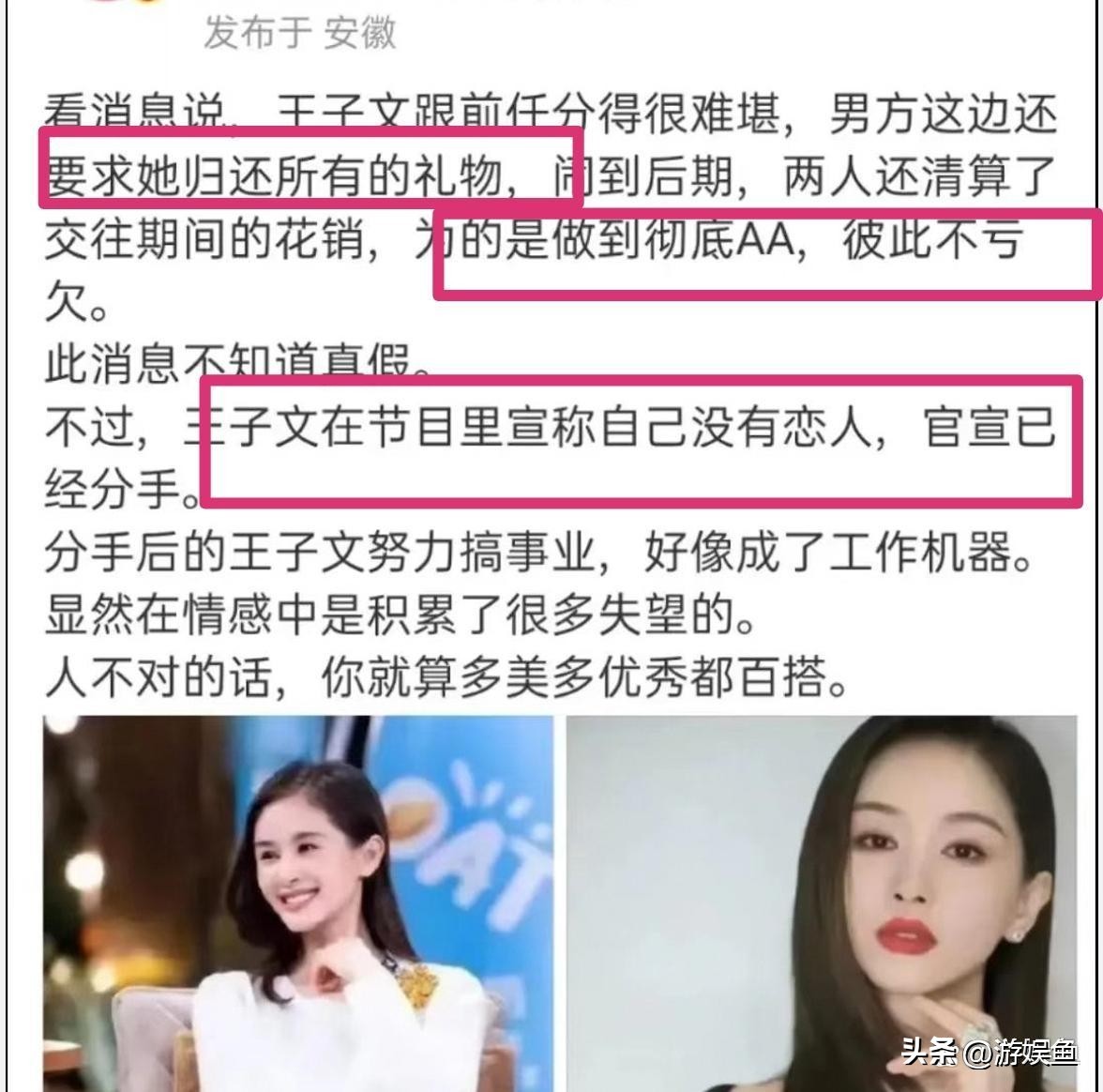 大瓜!曝王子文分手时很难堪,男方要回所有礼物,还清算日常开销