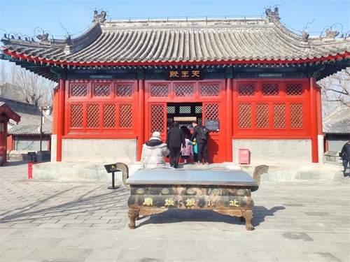这座庙宇占地面积约10000平方米,沿着中轴线依次排列着山门殿、天王殿、娘娘殿、东岳殿、玉皇殿,共有四进院落。它不仅是北京城中轴线北延长线的一个重要坐标,还具有很高的文物保护价值,对北京城市规划发展来说是一个重要的历史实物。