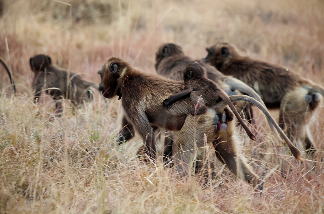 狮尾狒现仅存一种,分布限于埃塞俄比亚高原。2016年,海妈前往埃塞俄比亚,当地的朋友带她从首都亚的斯亚贝巴驱车两小时,到达了埃塞北部一个叫鸡蛋桥的地方。据介绍,桥是由意大利人建造,为了增加稳固性,当初建桥时材料中加入了鸡蛋清,故称为鸡蛋桥。海妈下车步行了半小时,就看见了一群狮尾狒。