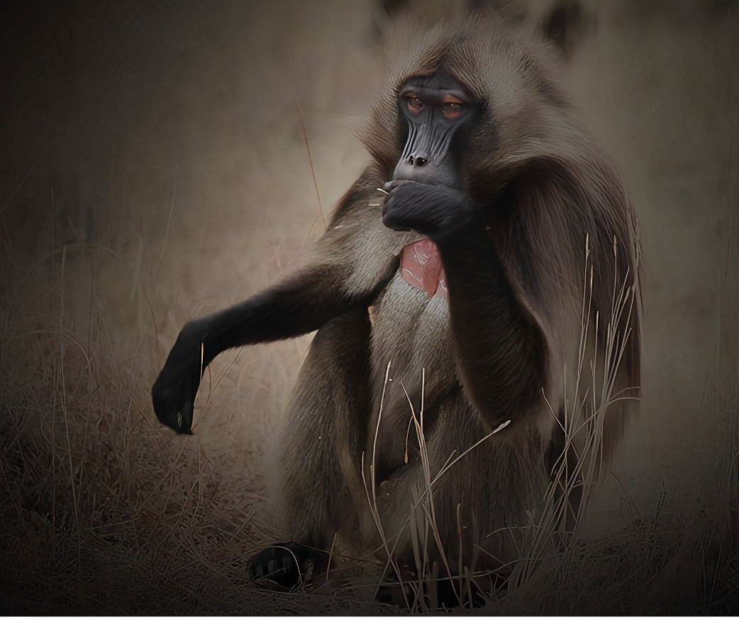 在普遍印象里,我们看到的猴子都喜欢吃水果,但狮尾狒却是猴子家族中的一大另类。它们以素食为主,喜爱吃草,而且是灵长类动物中唯一几乎完全以草为食的种类。
