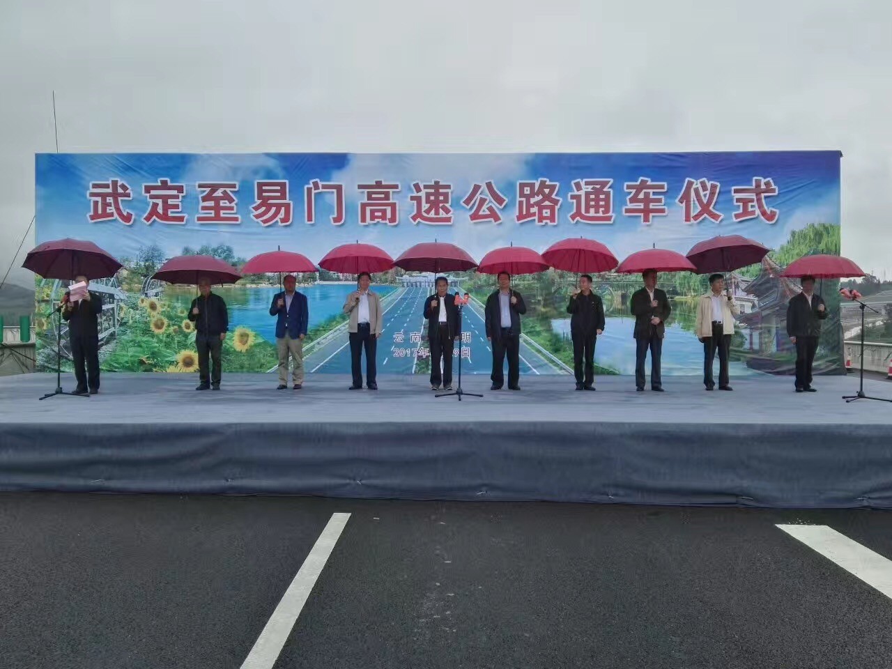 (云广记者 袁晓星)今天(29日)上午,武定至易门高速公路举行通车仪式。武易高速公路于2015年8月份实现开工建设,估算总投资139.75亿元。按双向6车道,速度100公里/小时设计。武易高速公路起于武定县城东南杨柳新村附近,止于玉溪市易门县城东南瓦窑坝附近,途经武定、禄丰、安宁、易门4个县市,全长104.3公里。