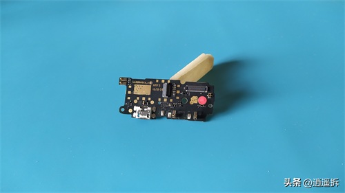 断开两处连接座以及同轴线,随后取下尾插小板。尾插小板背面有胶,拆解时需加以留意。