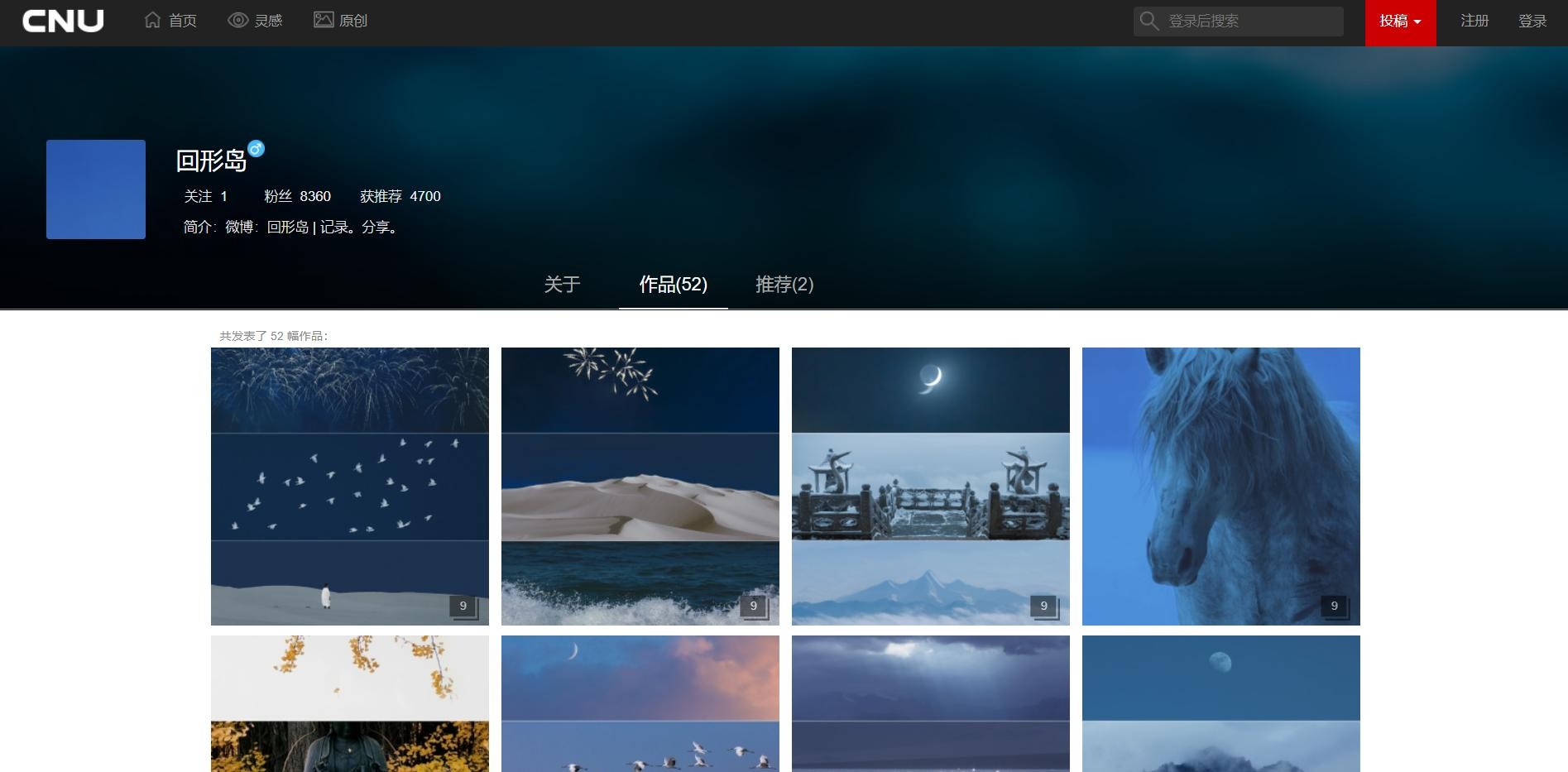 原创部分专注于给原创摄影师们一个展示自己的舞台,除了发布在网站上,微博超话#CNU视觉联盟的更新也是也不错的哦,首页就是按照日期,自动摘取灵感和原创板块的内容整合在一起,让你进入首页就能够快速浏览到优秀的内容。