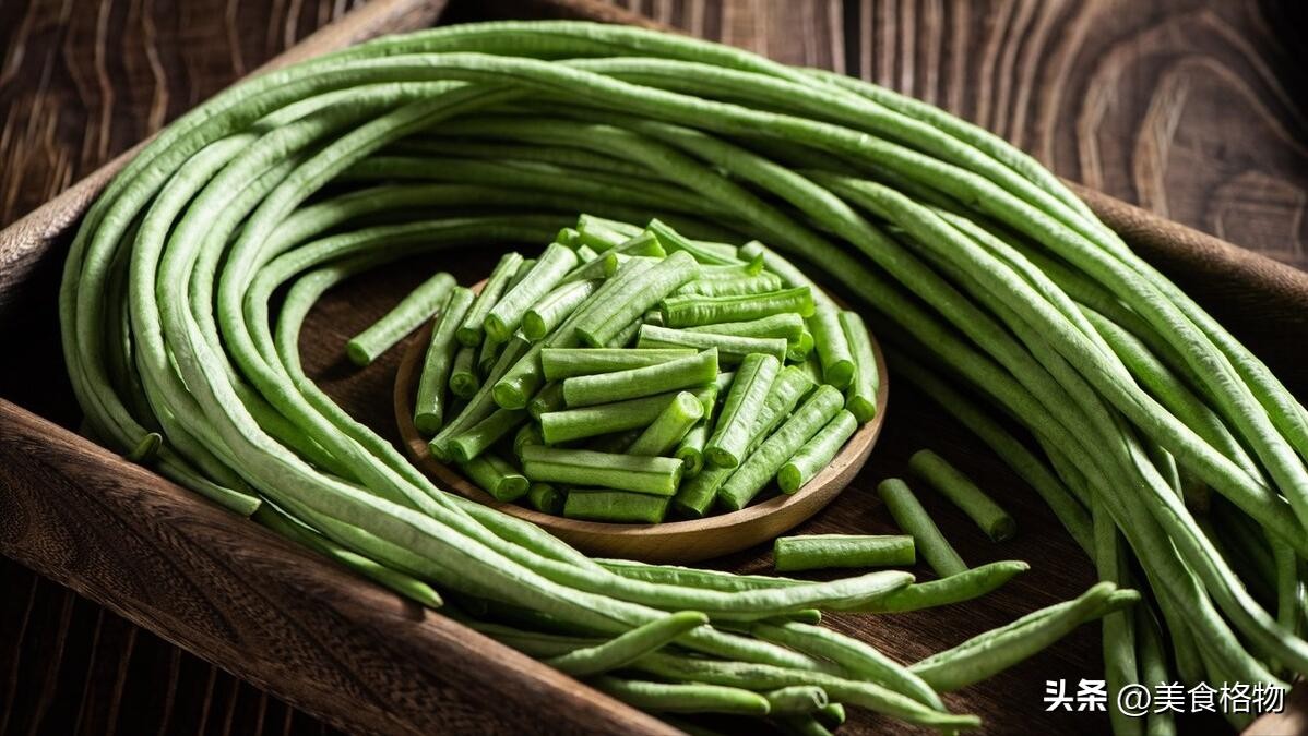 然后咱们处理长豆角,长豆角比较简单,它不用切,只需要把两头截掉就行。另外,检查一下豆角的中间部位,如果发现有折断的、腐烂变质的,有虫子动的,一定要挑出去不要。剪好之后,同样的方法清洗干净。