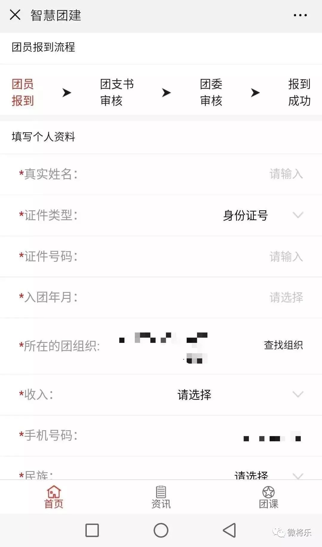输入本人手机号码根据提示登录后,进行信息申报。(可使用原数字共青团的账号密码或短信验证登录),待团支部和团委审核后,报到就完成啦!
