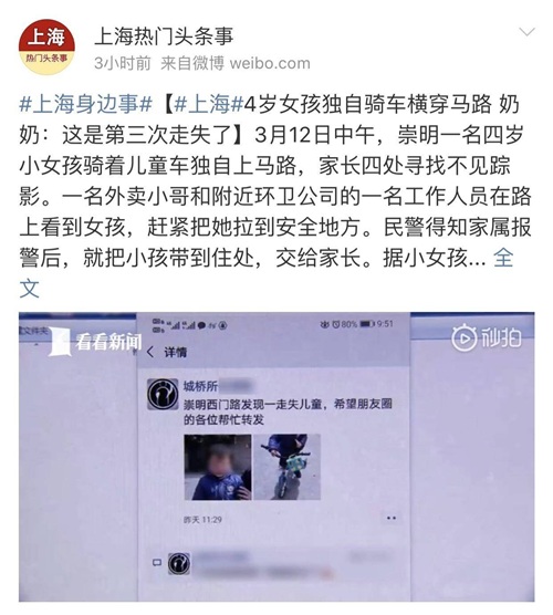 其实在我们的生活中有很多这样的案例,外卖小哥在送货途中,看见走失的小女孩,他的第一反应是带她去找警察,送她到安全的地方,而不是这一单外卖延时是否会扣钱,是否违反公司的规定。